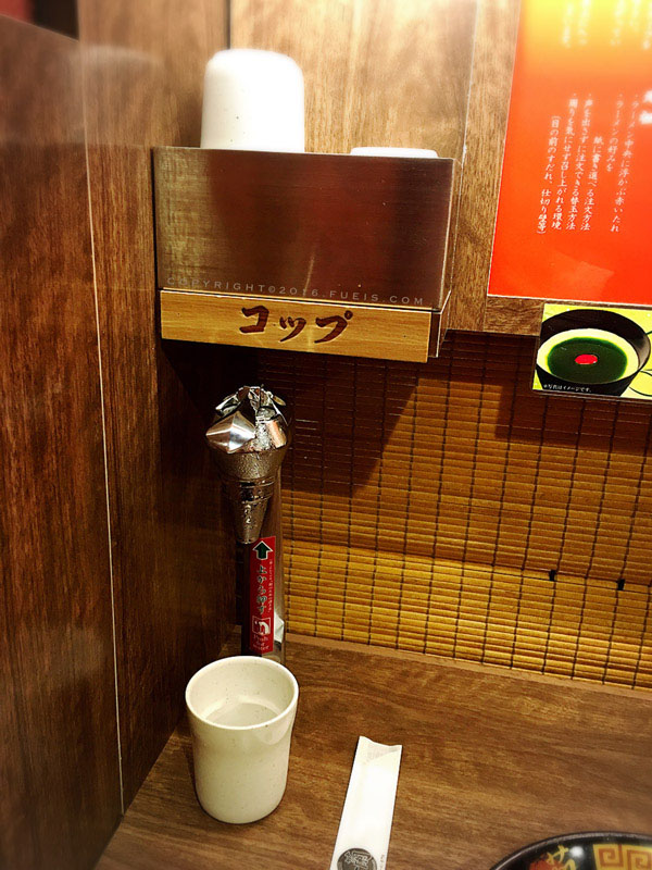 说起来一兰拉面的位置是单个单个的,然后每个位置有个这样的水龙头。