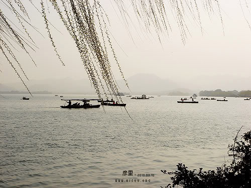 今天天气很好,太阳大又有风,很适合出门踏青的说!所以我看见西湖边的人啊……还有很多人划船|||