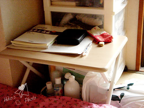 今天我在这张小桌子上面看了一下午的书,预习明天的功课><