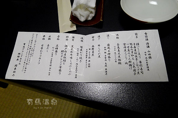 晚餐的菜单!以下进入美食阶段!并且回了旅馆泡了澡,也给相机充好电了!!!