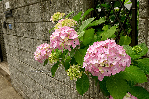 这个貌似是叫紫阳花?日本一到夏天就到处这种花~
