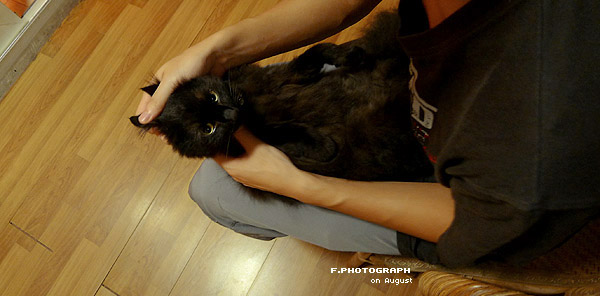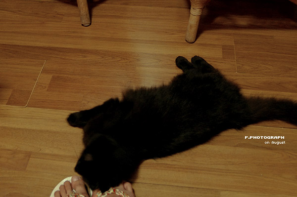 它跑到我脚边蹭了2下就趴下了……超可爱的!