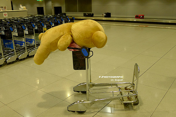 于是等我们出了关都11点了……我们拿行李的时候你看KUMA都已经累成这样了……