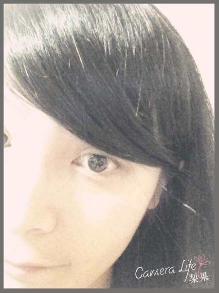 好大的半张素颜!!!爱疯前置自拍摄像头像素不给力,在家里这种灯光昏暗的地方拍出来的图太渣了……所以我就彻底用PS效果给盖掉了……
