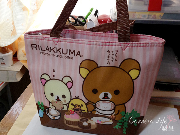 最后就是把整个便当放到这个保冷袋里面啦,不至于被太阳晒成热的。这个袋子是之前呆熊抽奖的时候500yen抽来的><终于派上用场了~