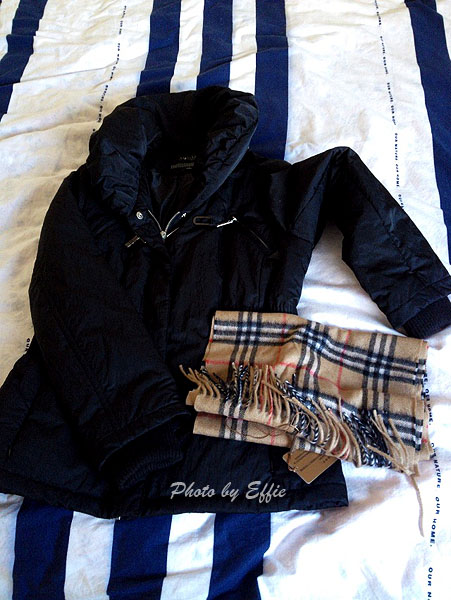 这是给我的衣服和围巾,衣服是阿姨给我的,围巾貌似是男朋友的妈妈买的。