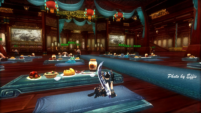 刚好现在是帮会食堂的晚饭时间,坐下吃顿饭咯~