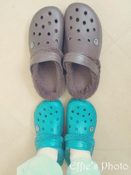 有没有好萌好可爱!本来想买黄色的,但黄色那双是LL的太大了XDD(请无视我撩起来了的裤管)重点是这双鞋子超级暖和的!!!