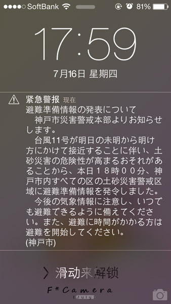 来日本5-6年了,第一次收到避难准备警报╯﹏╰手机响的时候我还在想这什么铃声我没设置过啊,拿起来一看竟然是避难准备警报……