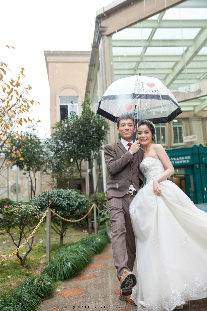 之前有说拍婚纱照当天从早上就开始下雨所以那天没拍外景嘛!